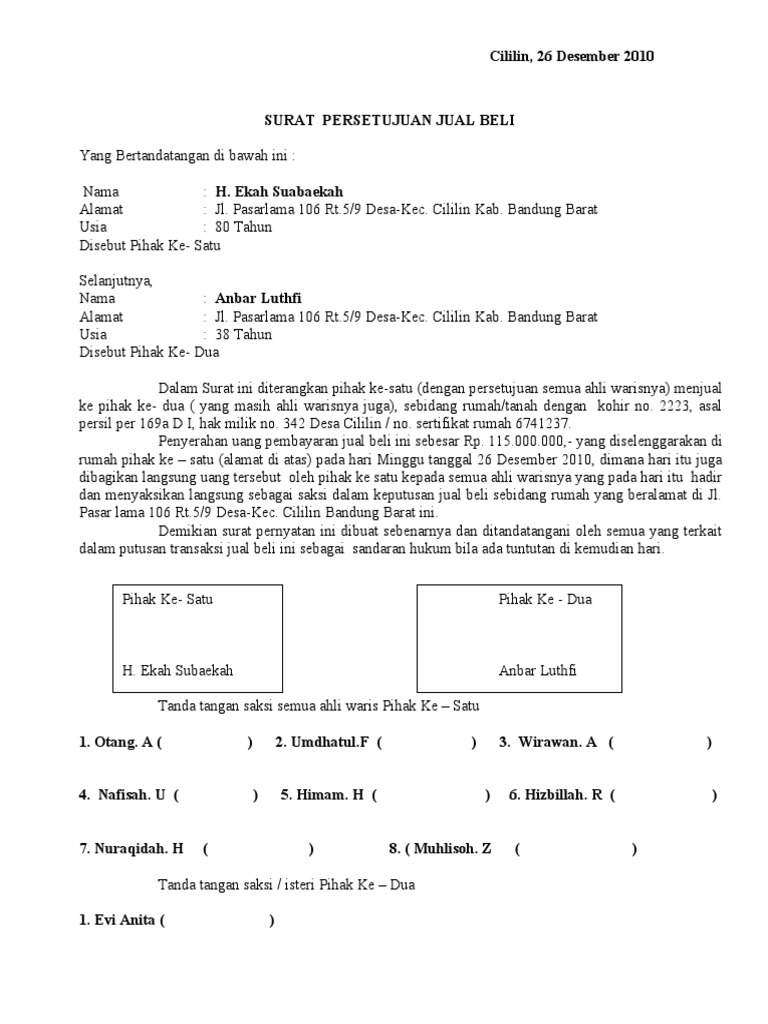 Pernyataan ahli contoh surat jual beli tanah warisan keluarga. Check spelling or type a new query. We did not find results for: Maybe you would like to learn more about one of these?